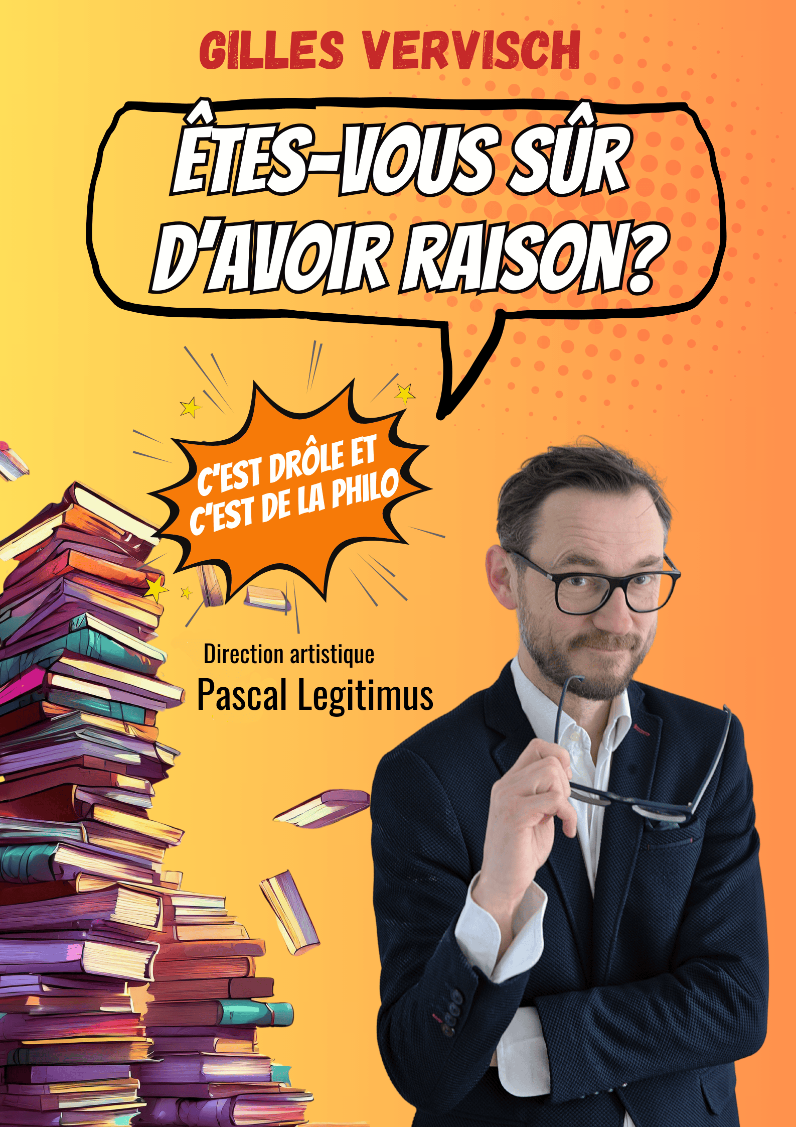 Mais au fait, êtes-vous sûr d’avoir raison ? Une question existentielle qui permet d’aborder la philo sous un angle drôle et ludique. Un spectacle entre stand-up et conférence qui compte bien dépoussiérer la philosophie.